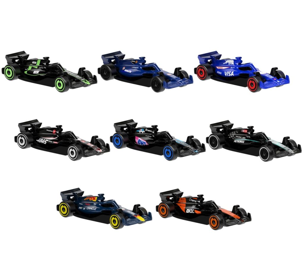 A parceria entre Fórmula 1 em Hot Wheels mantêm-se no ano 2025. Os novos modelos representam oito equipas da F1 em packs de 5 unidades. Cada carro foi construído para correr na icónica pista cor de laranja Hot Wheels, enquanto os carros apresentam detalhes realistas para reproduzir um carro de F1, incluindo a carroçaria, chassi de metal e pinturas originais das equipas assim como dos pneus com a marca Pirelli para dar ainda mais vida ao carro.
