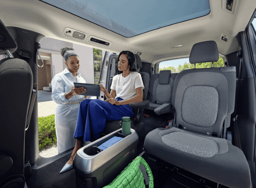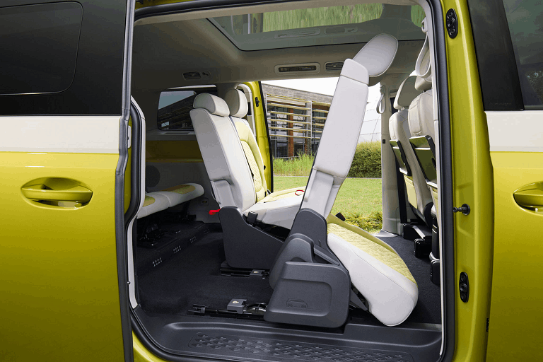 As novas versões ID. Buzz com sete lugares têm um comprimento total de 4.962 mm. Com cinco pessoas a bordo, a capacidade máxima da bagageira é de 1.340 litros (carregada até ao bordo superior dos encostos dos bancos traseiros); com sete pessoas, a capacidade da bagageira continua a ser de 306 litros. Se os encostos dos cinco bancos da segunda e terceira filas forem rebatidos, o volume da bagageira aumenta para os 2.469 litros. O ID. Buzz com seis lugares, é configurado na disposição 2/2/2, até agora só estava disponível como veículo de cinco lugares (2/3).