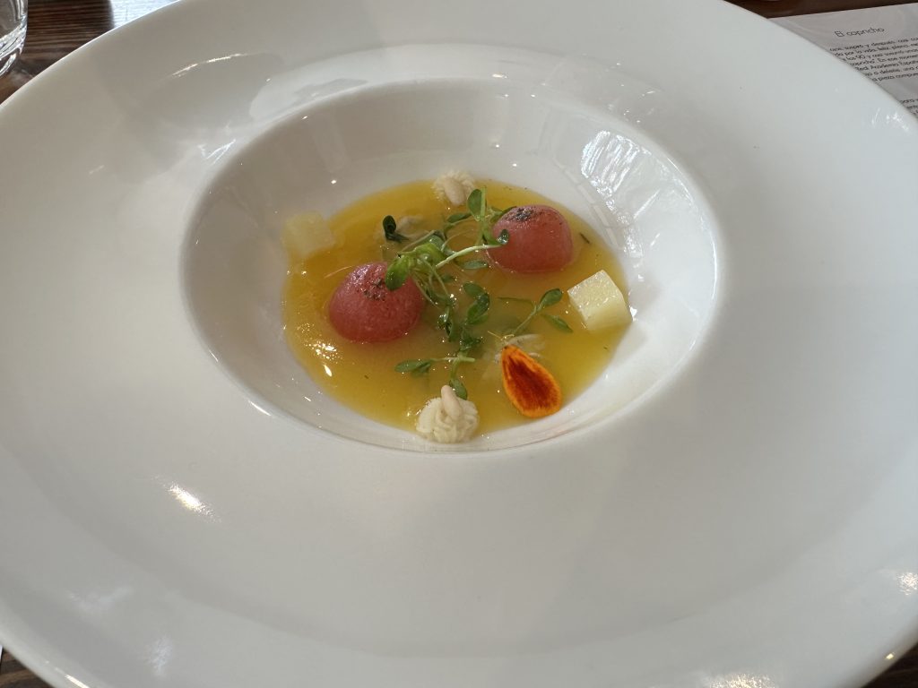 Mais do que um chef, é um contador de histórias através dos sabores. Muito simpático Manuel Franco Peral fez questão de vir sempre à mesa apresentar pessoalmente cada um dos pratos que foi servido aos convidados.